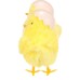 This decorative chick in yellow is covered with soft fabric that realistically mimics feathers. It stands on a sturdy plastic base and features a detailed eggshell on its head, adding a playful and spring-like touch. Its compact size makes it suitable for placement on shelves, tables, or in spring arrangements. Available in a mix of two pose variants, it brings life to any interior or display.