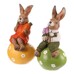 This decorative figurine of a rabbit sitting on an egg is made from high-quality magnesium, ensuring a sturdy and detailed finish. Each rabbit is hand-painted in natural brown tones with colorful accents – orange dress holding a carrot or green trousers with purple tulips. These figurines are ideal for spring or Easter interior decoration, adding a playful and cheerful touch. The durable material allows for easy maintenance and makes them suitable for long-term display on shelves or cabinets.
