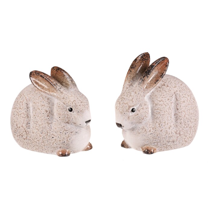 The ceramic rabbit figurine in a cream shade serves as a decorative element suitable for various interior styles. Its rounded body and finely detailed ears and eyes provide a natural and delicate appearance. The surface features a subtle texture that highlights handcrafted quality and adds to its authentic feel. Size L allows placement on shelves, dressers, or tables as a distinctive decorative accent. The figurines come in a mix of two variants, with the price stated per single piece.
