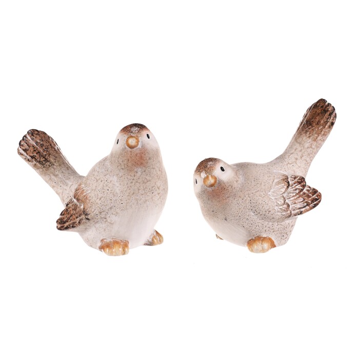 The ceramic bird figurine in a cream finish serves as a delicate decorative element suitable for various interior styles. Its finely detailed body with subtle texture and natural color gradient from cream to brown creates the impression of a lifelike bird. Available in size L, the figurines come in a mix of two variants that can be combined for a more interesting decoration. Made from sturdy ceramic material, they can be placed on shelves, dressers, or window sills as a low-maintenance accent. The price is for one piece.