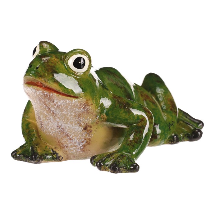 The medium-sized ceramic frog figurine is crafted in shades of green with realistic details and a glossy glaze that highlights its shape and colors. It features expressive eyes and detailed limbs, giving it a lively and natural look. Thanks to the high-quality ceramic base, it is suitable for decorating both interiors and exteriors, where it adds an original and playful element. It is ideal for placing on a shelf, garden table or as part of a themed decoration.