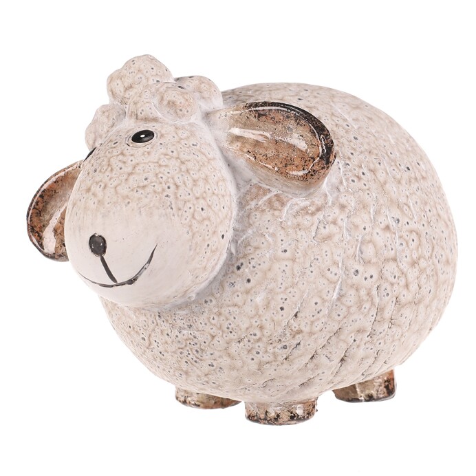 The ceramic sheep figurine in a creamy shade features a decorative element with a delicate surface texture resembling wool. Its rounded shapes and finely crafted ears and snout give the figurine a friendly and playful expression. Compact size S makes it suitable for placement on shelves, tables, or display cabinets, enhancing the cozy atmosphere of any interior. The sturdy ceramic body ensures stability and easy maintenance.