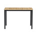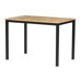 The dining table measuring 110x70x75 cm features an MDF tabletop with a wild oak decor and a sturdy metal base finished in matte black paint. The tabletop is designed for easy maintenance and resistance to everyday wear, ensuring long-lasting durability. The metal base provides solid and stable support, keeping the table securely in place during use. Its modern design with natural wood tones fits well in various interiors, from dining rooms to workspaces. The table is not extendable, emphasizing its compact and practical design.