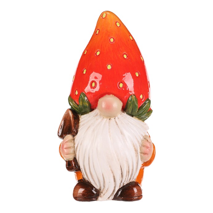 The ceramic figurine of a dwarf with a red hat in the shape of a strawberry brings a playful and colorful element to any interior and garden. The detailed body with a distinctive white beard and green leaves under the hat creates an authentic look. Thanks to the solid ceramic material, it is suitable for placing on a shelf, windowsill or as part of a decorative composition. Size M allows for easy integration into various spatial arrangements.