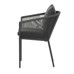 The garden chair features a sturdy aluminum frame in a grey finish, providing stability and durability for outdoor use. The backrest and seat are upholstered with quick-drying grey fabric that is water-resistant and easy to maintain, ensuring comfort in changing weather conditions. The chair’s design includes modern woven detailing made from durable fibers, enhancing both strength and visual lightness. Its ergonomic shape offers comfortable seating for garden gatherings. The chair’s load capacity meets standard outdoor furniture requirements, making it suitable for everyday use.